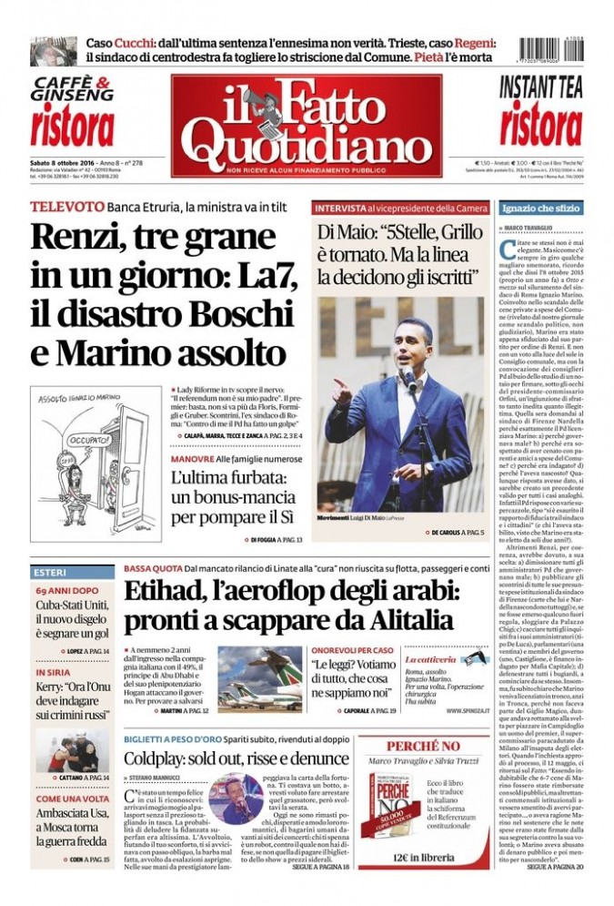 T E L E VO T O Banca Etruria, la ministra va in tilt Renzi, tre grane in un giorno: La7, il disastro Boschi e Marino assolto Lady Riforme in tv scopre il nervo: “Il referendum non è su mio padre”. Il premier: basta, non si va più da Floris, Formigli e Gruber. Scontrini, l’ex sindaco di Roma: “Contro di me il Pd ha fatto un golpe”