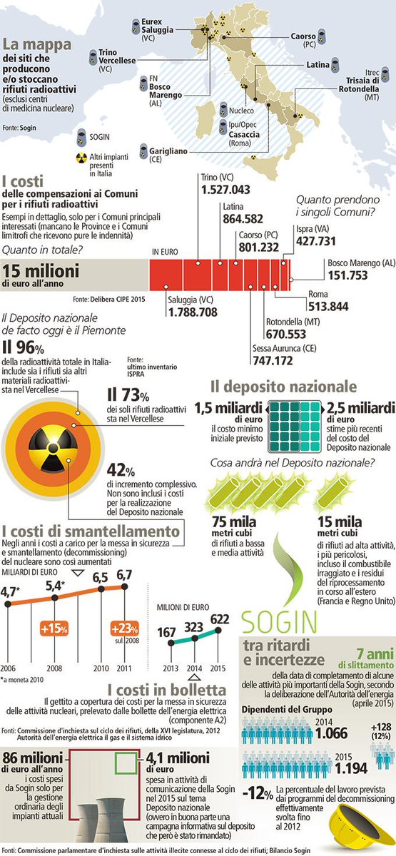 la mappa dei siti che producono e/o stoccano rifiuti radioattivi (esclusi centri di medicina nucleare) fonte Sogin. Comune di Latina 864.582 € l'anno