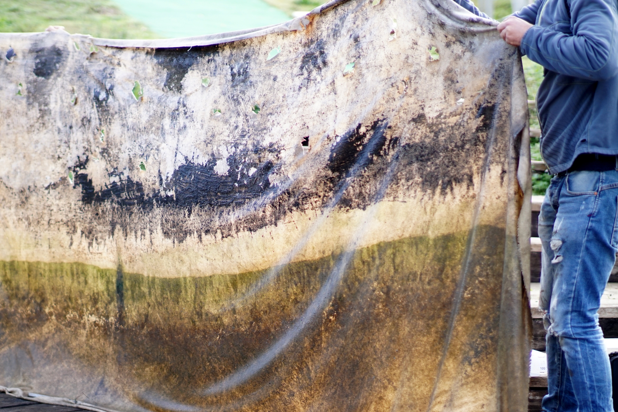 Al momento della rimozione, sebbene l’immersione sia stata più breve del previsto e di quanto avvenuto in altri contesti, le tele mostravano già in maniera molto marcata il segno della natura e degli agenti fisici a cui erano state sottoposte; in quell’occasione il personale del Servizio Monitoraggio delle risorse idriche dell’ARPA Lazio ha collaborato con l’artista per effettuare un attento recupero dei tessuti così da impedire fenomeni di dilavamento e poter raccogliere la maggior parte del macrobenthos (insieme degli invertebrati acquatici di dimensione superiore a 1 millimetro che vivono a stretto contatto col fondale o con supporti solidi) accumulatosi sulle tele stesse.