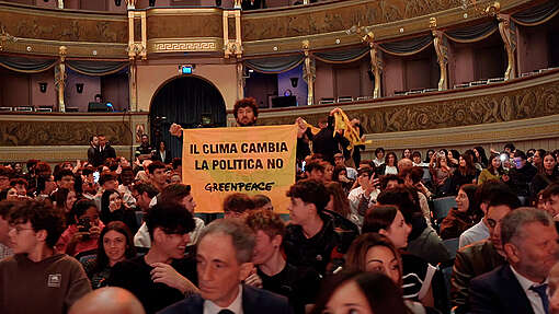 Questa mattina un gruppo di attivisti di Greenpeace Italia ha contestato il vicepresidente del Consiglio, nonché Ministro delle Infrastrutture e dei Trasporti Matteo Salvini, impegnato in un dibattito al Festival dell’Economia di Trento, per denunciare l’inazione del governo nel contrasto alla crisi climatica.
