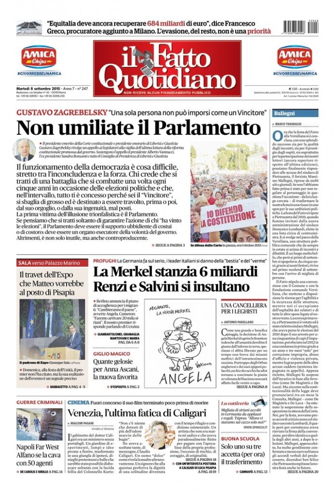 P RO F U G H I La Germania fa sul serio, i leader italiani si danno della “bestia” e del “ve r m e ” La Merkel stanzia 6 miliardi Renzi e Salvini si insultano