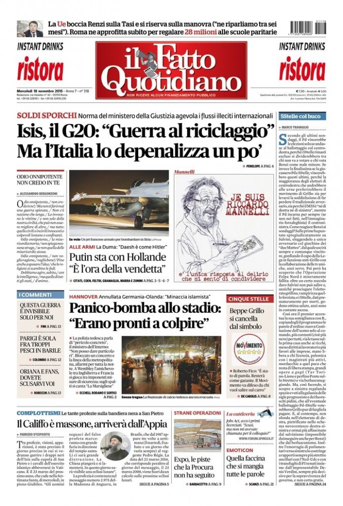 SOLDI SPORCHI Norma del ministero della Giustizia agevola i flussi illeciti internazionali Isis, il G20: “Guerra al riciclaggio” Ma l’Italia lo depenalizza un po’