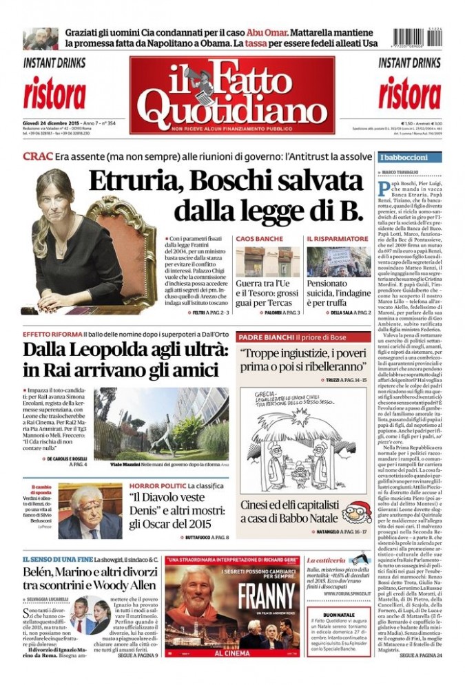 CRAC Era assente (ma non sempre) alle riunioni di governo: l’Antitrust la assolve Etruria, Boschi salvata dalla legge di Berlusconi Con i parametri fissati dalla legge Frattini del 2004, per un ministro basta uscire dalla stanza per evitare il conflitto di interessi. Palazzo Chigi vuole che la commissione d’inchiesta possa accedere agli atti segreti dei pm. Incluso quello di Arezzo che indaga sull’istituto toscano