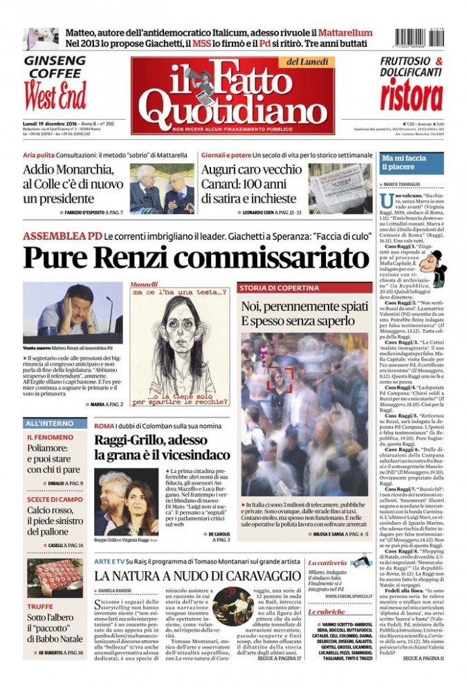 ASSEMBLEA PD Le correnti imbrigliano il leader. Giachetti a Speranza: “Faccia di culo” Pure Renzi commissariato Il segretario cede alle pressioni dei big: rinuncia al congresso anticipato e non parla di fine della legislatura: “Abbiamo straperso il referendum”, ammette. All’Ergife sfilano i capi bastone. E l’ex premier continua a sognare le primarie e il voto in primavera