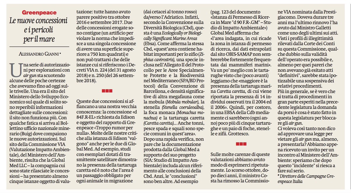 #Trivelle - Le nuove concessioni e i pericoli per il mare. Il nostro articolo a firma del direttore delle campagne Alessandro Giannì su @ilmanifesto di oggi. Da leggere!