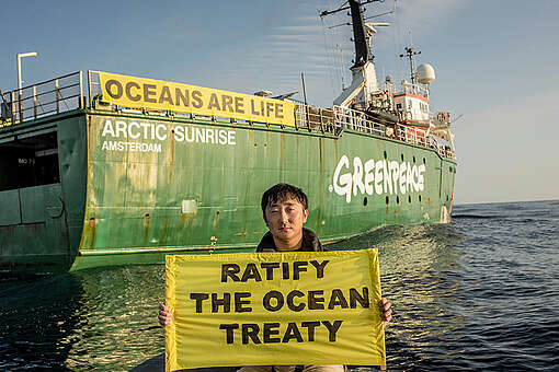 La Arctic Sunrise ha intrapreso una spedizione di sei settimane per mostrare gli straordinari benefici di un efficace sistema di protezione del mare e della biodiversità e sostenere la ratifica del Trattato Oceani.