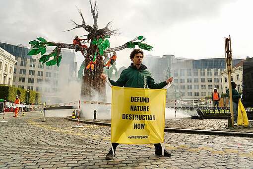 Albero gigante di Greenpeace davanti al Parlamento Europeo: «Fermate la distruzione della natura»